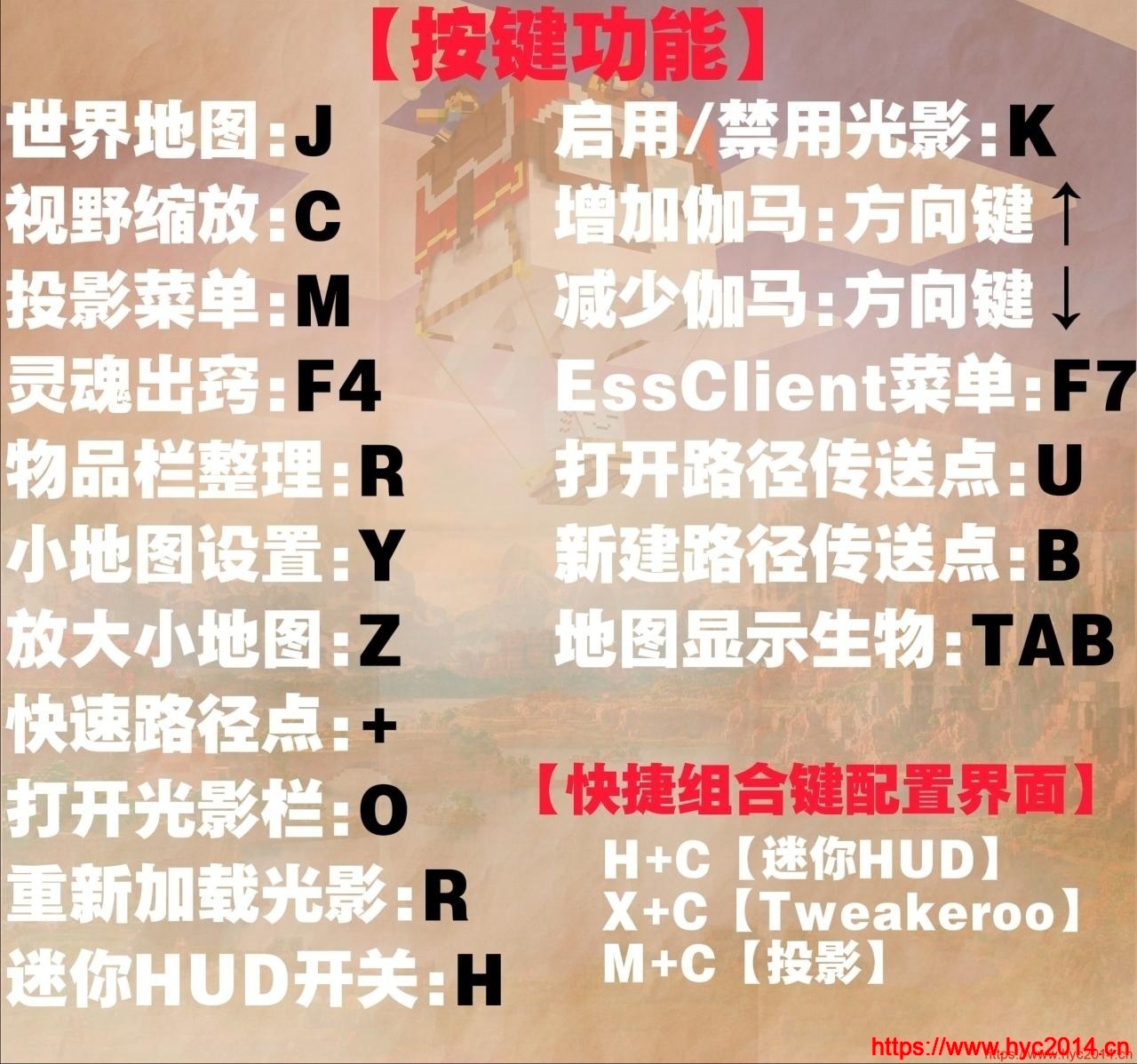 H+C【迷你HUD】 X+C【Tweakeroo】 M+C【投影】